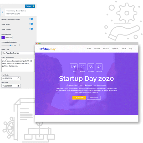 You can customize your theme with all Google font options for Title, Paragraphs, and logo. It also comes with unlimited color schemes so you can customize your site’s design to match your own brand.